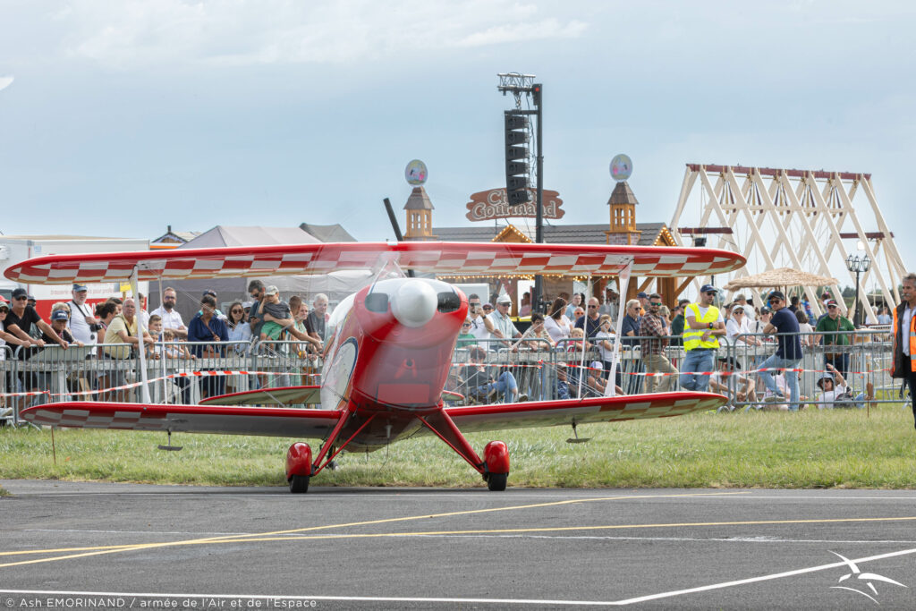 Nous avons, en particulier, eu droit aux présentations de 2 champions du monde de voltige, par le capitaine Florent ODDON de l’équipe de voltige de l’Armée de l’air et Madame Fanny VIALLARD sur son Pitts 2B.
